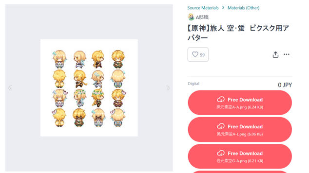 You can also upload your own custom avatar. The avatar settings page has more information about the requirements (one sheet of your avatar facing every direction, image size 96 w x 128 h. (1 character at 32 x 32)).Alternatively, you could use Booth, a Japanese marketplace website, to find free and for-sale avatars. To make things simple for the non-Japanese speaks among us, here is a direct link to the pictSquare avatars tag on the website.You can filter it out to see only free avatars, or even try to find specific characters or fandoms you like. Look at those adorable Travelers!