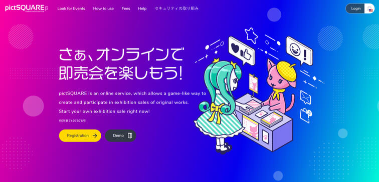 (You can see my cat avatar at the entrance!)This demo only has four exhibitors (pictSquare calls them circles) but our event will have much more!You navigate by using the arrow keys on your keyboard, and you can click with your mouse.This is what an default stall looks like:
